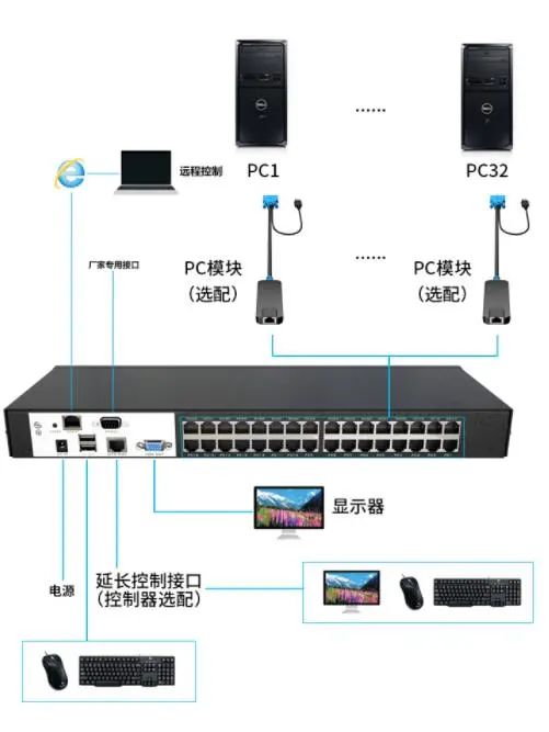 12、PC模塊與KVM連接線纜0-100米以內(nèi),50米效果最佳