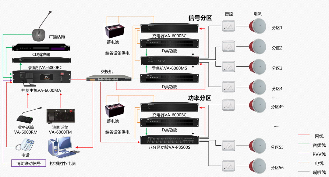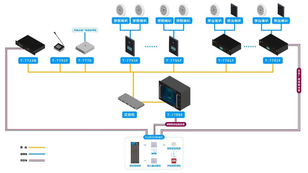 9. 消防聯(lián)動(dòng):系統(tǒng)接入消防報(bào)警信號(hào),實(shí)現(xiàn)消防聯(lián)動(dòng);支持臨層、臨區(qū)報(bào)警;結(jié)合網(wǎng)絡(luò)適配器的三線制強(qiáng)切功能,實(shí)現(xiàn)音量控制器實(shí)時(shí)強(qiáng)行打開(kāi)。