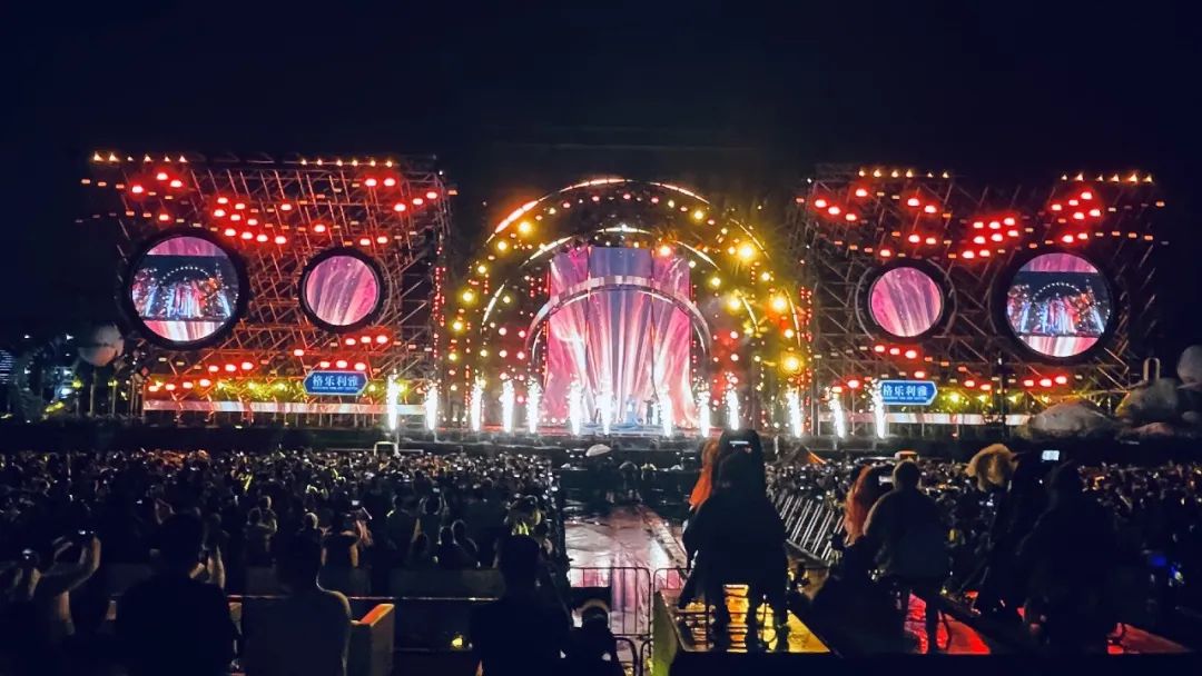 演出地點距離文昌航天發(fā)射場不遠,音樂盛典主舞臺的設(shè)計靈感也源于此,以“潮汐鎖定”這天文學(xué)名詞出發(fā),設(shè)計成如同一飛沖天的火箭般。又由于此次盛典在海邊開唱,所以“星辰”和“大海”這兩個主題元素自然少不了。在盛典舞臺上,歌手們演唱了多首歌曲共同致敬星辰大海和飛天夢想,鄧紫棋的《天空沒有極限》、周深的《光亮》、黃齡的《星河嘆》、黃霄云的《星辰大海》、鄭云龍的《摘星辰》……一首首精彩的歌曲帶著現(xiàn)場觀眾上天又入海,沉醉在這個海風習習的浪漫夜晚。