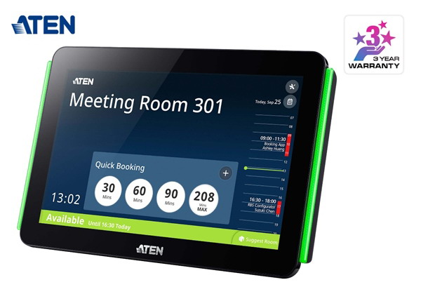 VK430會(huì)議預(yù)訂系統(tǒng)-10.1“RBS面板旨在為會(huì)議空間提供方便的日程安排和可用性分配。它由集中管理軟件ATEN RBS Configurator集中配置,并與包括Microsoft Office 365日歷、Google Workspace日歷和Microsoft Exchange Server在內(nèi)的日歷服務(wù)器集成企業(yè)級(jí)房間管理解決方案,適用于所有業(yè)務(wù)環(huán)境,能夠讓會(huì)議室管理變得輕而易舉,并同時(shí)提升整體的房間預(yù)訂體驗(yàn)。產(chǎn)品支持以太網(wǎng)供電(PoE),允許其通過單個(gè)以太網(wǎng)線纜接收電力和通信。并帶有可定制顏色的LED燈條,可一目了然地顯示房間的可用性。配置的預(yù)裝壁裝套件,還配備了3M VHB™ 膠帶,便于安裝在硬質(zhì)或玻璃墻上,產(chǎn)品使用便捷性極高。