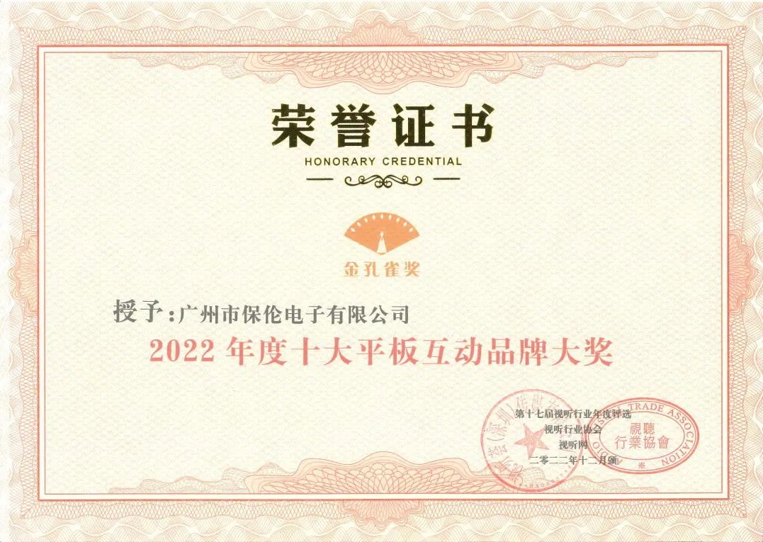 2022年度十大平板互動(dòng)品牌大獎(jiǎng)