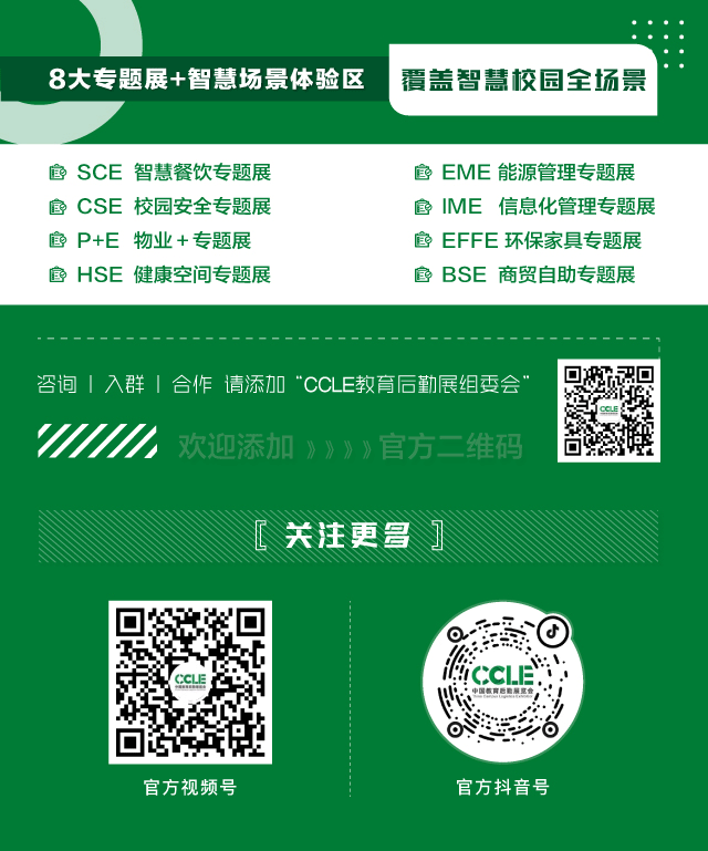 CCLE中國教育后勤展覽會,簡稱“CCLE教育后勤展”。展會聚焦校園后勤管理服務,通過展示校園安全、智慧餐飲、能源管理、環(huán)保家具、校園信息化等多個方面展品,以及組織開展全國學校教育后勤領域論壇會議等多方面服務,打造集展覽展示、學習交流、供需鏈接、貿(mào)易合作等功能于一體的校園綜合服務平臺,引領教育后勤管理變革,助力校園管理服務升級,提升校園管理服務保障能力,助推新時代教育后勤現(xiàn)代化建設。