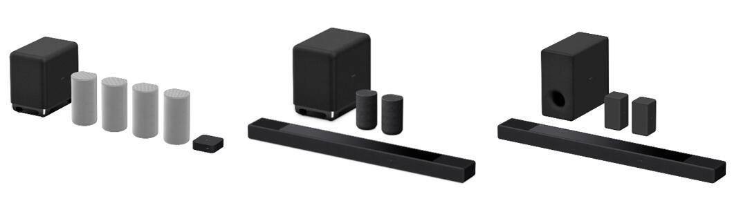 搭載360 SSM音頻黑科技的國(guó)行套裝陣容,從左至右:HT-A9+SW5震撼環(huán)繞套裝,HT-A7000+SW5+RS5震撼環(huán)繞套裝,HT-A7000+SW3+RS3S低音環(huán)繞套裝