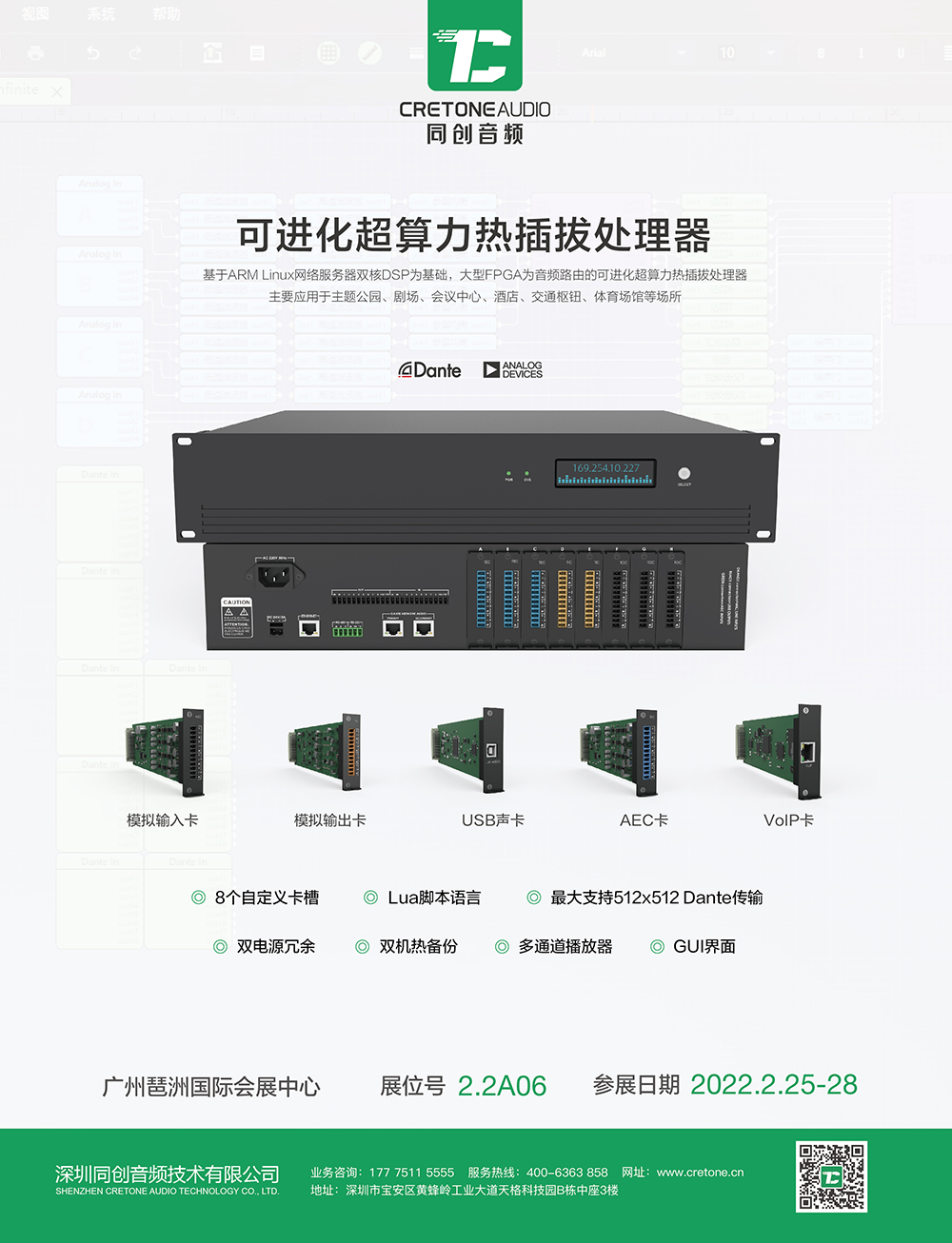 深圳同創(chuàng)技術(shù)有限公司將攜多款新品及經(jīng)典臻品重磅亮相本屆展會(huì),為您展示DSP空間原生音頻算法平臺的最新技術(shù)、產(chǎn)品以及解決方案。在此,同創(chuàng)音頻誠摯邀請您蒞臨展位【2.2 A06】參觀指導(dǎo)。