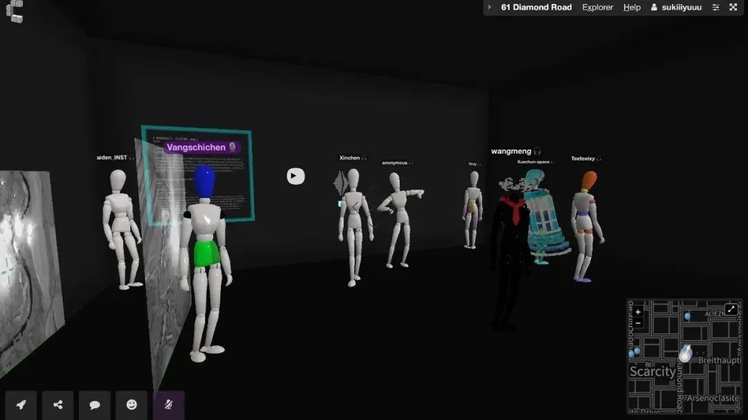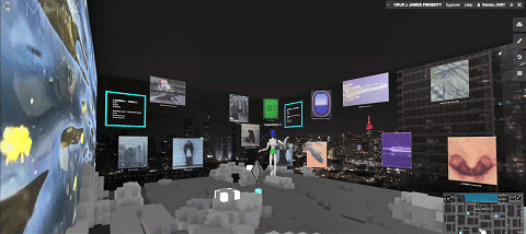 「云雲(yún)云」是「雷電所」在2022年展開的全新項(xiàng)目,它以元宇宙平臺(tái)Cryptovoxels作為起點(diǎn),每月開放一場(chǎng)線上虛擬展覽,并將在未來不斷生長、延展,思考如何侵入被物質(zhì)所限制感受的領(lǐng)土。所以,不是無趣的插圖動(dòng)畫,不是樓宇的復(fù)刻模擬,也不是物質(zhì)世界的觀看倫理。