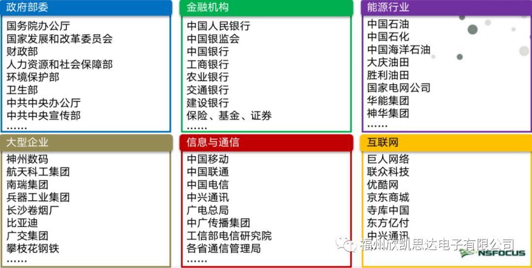 綠盟遠(yuǎn)程安全評估系統(tǒng)的客戶遍布各行各業(yè)、行業(yè)遍布如政府部委、金融機(jī)構(gòu)、能源行業(yè)、大型企業(yè)、信息與通信、互聯(lián)網(wǎng)行業(yè)等;重要核心客戶如國務(wù)院、財(cái)政部、中共中央辦公廳、四大行、中石油、中石化、國家電網(wǎng)、三大運(yùn)營商移動(dòng)聯(lián)通電信、京東等;