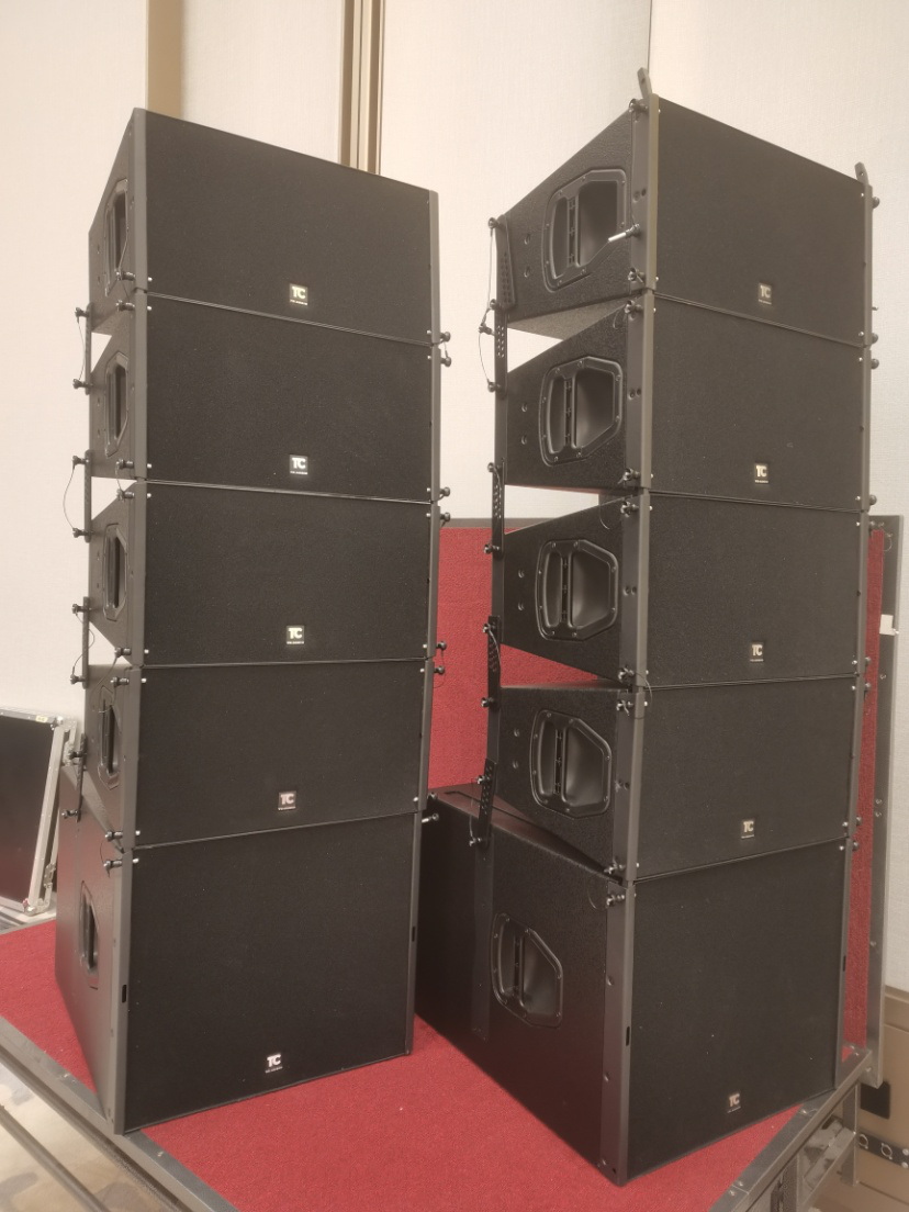 為適應(yīng)于該會議中心的展覽、會議、綜合活動等多功能用途,揚(yáng)聲器系統(tǒng)設(shè)計(jì)為流動式,18只TC-AUDIO LA210雙10線陣全頻、4只TC-AUDIO LA118S單18線陣超低,既可作為一套大型演出擴(kuò)聲系統(tǒng),亦可適用于會場拆分為多個(gè)場所的擴(kuò)聲系統(tǒng)使用。配置有4只TC-AUDIO MC112流動式舞臺返送揚(yáng)聲器、4只TC-AUDIO MC110輔助揚(yáng)聲器。搭配15臺TC-AUDIO DA系列數(shù)字功率放大器。