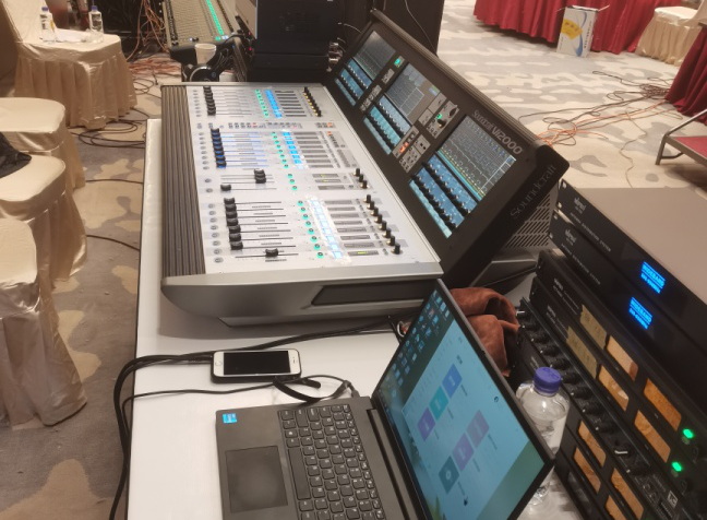 為解決音頻信號損耗及降低系統(tǒng)噪音,配置了2臺TC-AUDIO SP1236AD廣播級音頻分配器。選配英國Soundcraft聲藝 Vi2000作為主擴(kuò)調(diào)音臺,以及輔助Soundcraft Si Perfrmer3備份數(shù)字調(diào)音臺,為系統(tǒng)擴(kuò)聲提供安全完美的操作控制保障。TC-AUDIO還為該系統(tǒng)提供了智能會議混音設(shè)備及會議拾音話筒等設(shè)備。