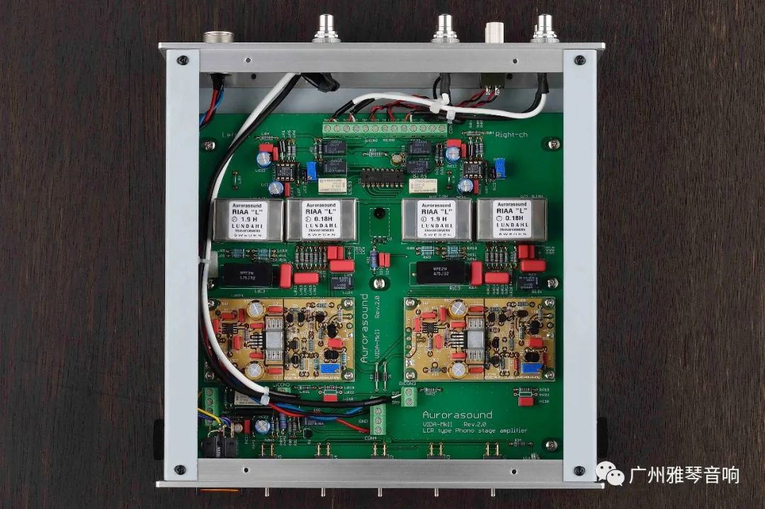 首先是EQ均衡部分,今次可說(shuō)是突破性地使用一般高價(jià)位唱放才會(huì)用的L/C/R電路方式。即是均衡線路上,除了電容用電阻外,VIDA MKII更使用四枚火牛分別以?xún)山M作高頻滾降(Roll off),另外兩組給低頻周轉(zhuǎn)(Turnover),相當(dāng)于DC阻抗作為電感形式去轉(zhuǎn)換不同需要的電平值,令唱放EQ部分能獲得L電感, R電阻和C電容三樣方式來(lái)處理,令音色質(zhì)素大大提升,曲線誤差值在0.25dB范圍內(nèi)。