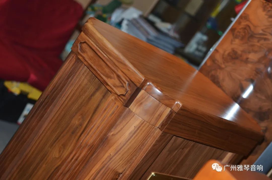 全胡桃實木外箱體:胡桃屬木材中較優(yōu)質(zhì)的一種,主要產(chǎn)自北美和歐洲。國產(chǎn)的胡桃木,顏色較淺。黑胡桃呈淺黑褐色帶紫色,弦切面為美麗的大拋物線花紋(大山紋)。黑胡桃非常昂貴。胡桃木有良好的物理穩(wěn)定性,不易變形,是高檔音箱箱體的首選制作材料。