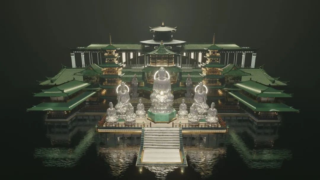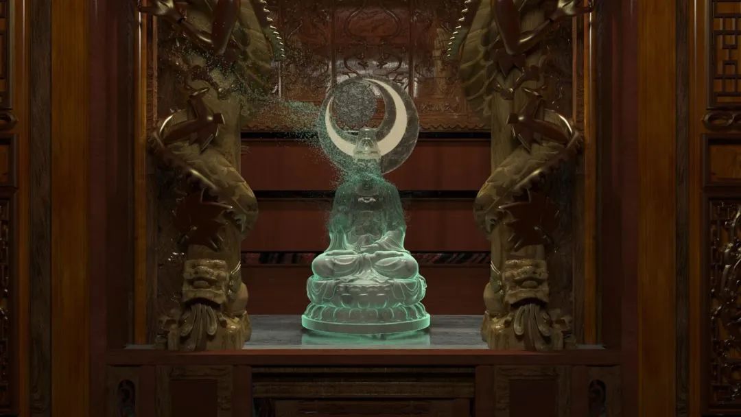 通過對于中華傳統(tǒng)宗教造像文化初現(xiàn)、構(gòu)成、崩解、輪回、重構(gòu)、再臨等概念場景的演繹,表達中華文化薪火相傳,生生不息的歷史沉淀,以及在數(shù)字技術(shù)參與下文化事業(yè)蓬勃發(fā)展的美好景愿。