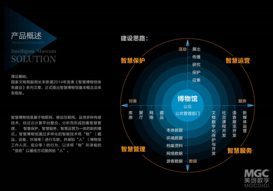 美創(chuàng)數(shù)字作為一家以博物館為中心,從事數(shù)字創(chuàng)意科技的綜合服務(wù)商,我們在積極探索博物館智慧化新趨勢,基于美創(chuàng)數(shù)字創(chuàng)意與數(shù)字化服務(wù)能力,將“科技”、“時尚”、“文化”、“互動共享”等元素深度融合,拓展博物館新型智慧化空間與應(yīng)用場景,傾力打造新一代智慧博物館。用科技賦能傳統(tǒng)博物館發(fā)展,服務(wù)于博物館智慧化研究、場景設(shè)計、數(shù)字化傳播與場景建設(shè),逐步搭建一個完整的智慧博物館生態(tài)系統(tǒng),推進傳統(tǒng)文化的傳承創(chuàng)新。