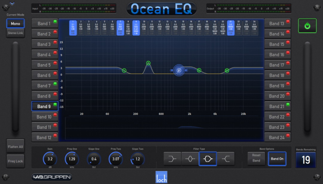值得一提的是,此次演出使用的是HD96-24固件新版本,其中新增了通道(mid/side processing)中/側(cè)處理的128個立體聲(Dynamic EQs)動態(tài)均衡器池,能顯示效果器機架與動態(tài)處理池的DSP資源,以及效果器機架與動態(tài)處理池之間切換;它還新增了Ocean EQ效果器,允許以最小的相移進行復(fù)雜的頻譜變化,能減少對相位的影響。