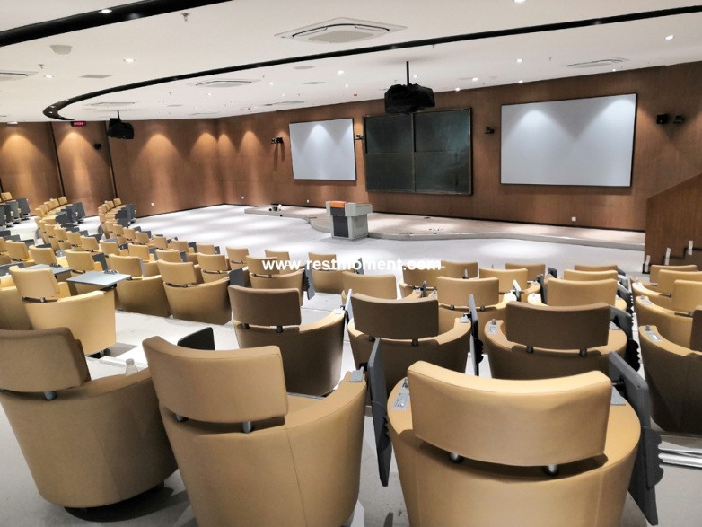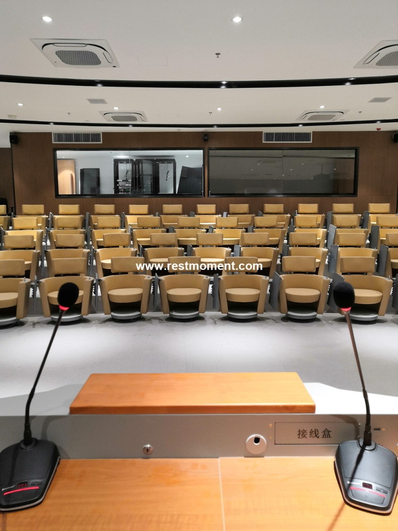 雷蒙電子為教室的每張椅子上裝備全數(shù)字扶手嵌入式會議系統(tǒng),RX-6810系列是集討論、視頻跟蹤、扶手式安裝方式等多功能為一體的高端系統(tǒng),指向性電容式麥克風(fēng),并帶有開啟指示燈圈,手持式話筒具有2米彈弓線連接線纜(拉長后),方便使用。全數(shù)字扶手嵌入式同傳會議系統(tǒng)RX-6818L系列,內(nèi)置通道選擇器,通過接收翻譯臺輸出的語言可接收8/16/32/64種不同的語言,立體聲耳機輸出,音量可自由調(diào)節(jié)。兩套系統(tǒng)會議單元可用于嵌入安裝座椅扶手上,也可以安裝在會議桌面上,且每個會議單元配置保護蓋,方便不使用的情況下保持座椅平整,及清理時具備防水功能,人性化設(shè)計,也便于日常整理和維護。