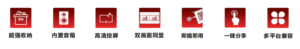 超大的收納空間,讓您的發(fā)射器,遙控器,觸摸筆等會議用具有個專屬收納空間,既是投屏器更是收納好幫手,讓會議桌更顯整潔專業(yè)。