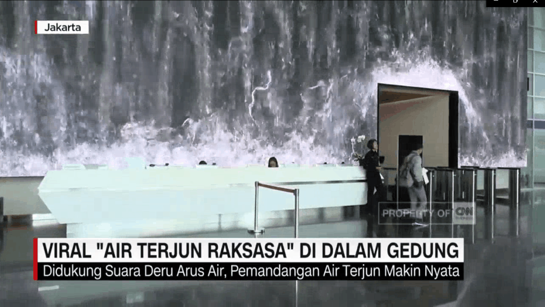 在印度尼西亞電信公司,其大廳接待處樹立著一面超大的高清廣告屏。這是三思為印尼電信定制打造的高清LED顯示屏,奔騰的水流傾瀉而下,激蕩起的水花仿佛就要“濺”出屏幕之外,逼真的顯示效給人撲面而來一種清涼之感。