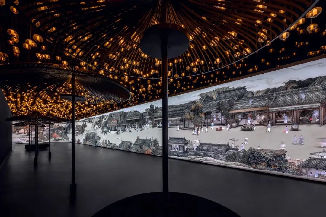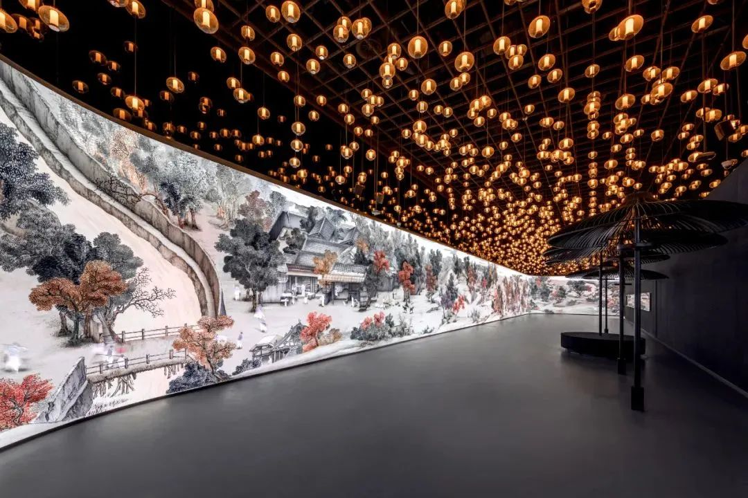 本次展覽基于清·馮寧版《金陵圖》,該畫作被譽(yù)為“南京版清明上河圖”,并突破性地將新銳科技引入文物數(shù)字化中,不僅將畫中的宋時(shí)南京繁榮景象動(dòng)態(tài)呈現(xiàn),更融合尖端科技,讓文物“活”起來,讓歷史“說話”,在全長(zhǎng)近 110 米、高 3.6米的大屏幕上,將這幅傳世長(zhǎng)卷放大百倍,觀眾由此可以以“精確到個(gè)位數(shù)厘米級(jí)”的精準(zhǔn)定位、自主決策的移動(dòng)端交互式,“走入”畫中,親身感受金陵盛世的無限風(fēng)華,無感體驗(yàn)第一人稱視角的入畫漫游。