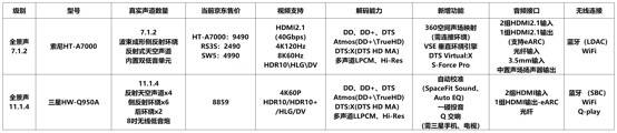 三星Q950A與索尼HT-A7000揚(yáng)聲器的對(duì)比圖(來(lái)源網(wǎng)絡(luò))