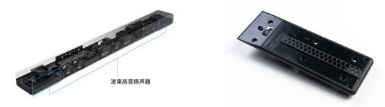 再來(lái)看看HT-A7000內(nèi)置的組件“側(cè)置波束高頻揚(yáng)聲器”。索尼特別留意了聲學(xué)管道的材料以及出音小孔的配置。為了減少直達(dá)聲、進(jìn)一步營(yíng)造環(huán)繞音,索尼根據(jù)想要的聲音共鳴效果選擇聲學(xué)管道的材料,并盡量在1毫米的厚度內(nèi)包含盡可能多的設(shè)計(jì)理念和小孔配置,增強(qiáng)聲音反射效果,從而精確定位和反射,使聲波集中在約75°~90°之間,減少耳朵能聽(tīng)到的直達(dá)聲,使聲場(chǎng)寬廣,適合聆聽(tīng)的位置廣闊。