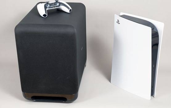 可選配的低音炮SA-SW5體型不小,內(nèi)置朝向地面的低頻被動(dòng)振膜,在低頻還原能力上比Q950A自帶低音炮更好。