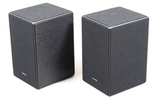 Q950A的環(huán)繞音箱每只有3個(gè)方向的揚(yáng)聲器,織物材料覆蓋揚(yáng)聲器透聲,另一面為塑料材質(zhì),略顯廉價(jià)。