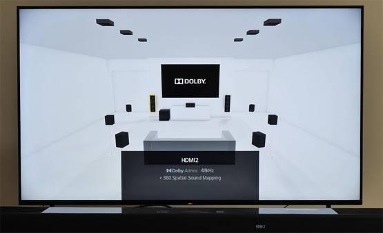 直通模式還可以實(shí)現(xiàn)OSD屏顯功能,在傳統(tǒng)AV功放上屬于標(biāo)準(zhǔn)配置,可以方便的在電視畫(huà)面上進(jìn)行音響的設(shè)置。除了設(shè)置菜單,在播放時(shí)只需按HT-A7000遙控上的display按鍵,就可以顯示當(dāng)前音軌信息。