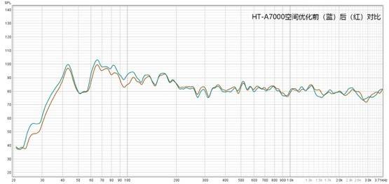 HT-A7000優(yōu)化前后的EQ表現(xiàn),(綠色線為優(yōu)化后),索尼的優(yōu)化以聲道平衡為主,對(duì)頻響還原有一定幫助。