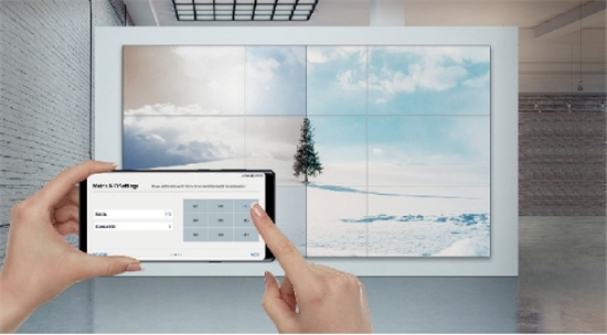 針對(duì)個(gè)性化的校準(zhǔn)需求,三星提供功能強(qiáng)大的免費(fèi)軟件三星Color Expert Pro幫助用戶管理亮度和色彩均勻性,可根據(jù)產(chǎn)品型號(hào)選擇不同的校準(zhǔn)項(xiàng)目。而對(duì)于需要更簡(jiǎn)單操作方案的使用者,三星Color Expert Pro Mobile移動(dòng)解決方案支持手機(jī)攝像頭,使用戶憑借自己的手機(jī)便能實(shí)現(xiàn)直觀、簡(jiǎn)便且快捷的視頻墻校準(zhǔn),手機(jī)中的用戶界面直觀簡(jiǎn)明,即使是非專業(yè)用戶也可以輕松掌握,調(diào)整高達(dá)5x5的視頻墻白平衡。此外,為三星視頻墻顯示屏連接數(shù)字標(biāo)牌播放盒,通過(guò)DisplayPort 1.2或HDMI端口,便能在超大視頻墻顯示屏上播放超高清內(nèi)容。利用數(shù)字標(biāo)牌播放盒自帶的菊花鏈功能,更可輕松對(duì)視頻墻顯示屏矩陣的不同顯示面板進(jìn)行控制和內(nèi)容管理。