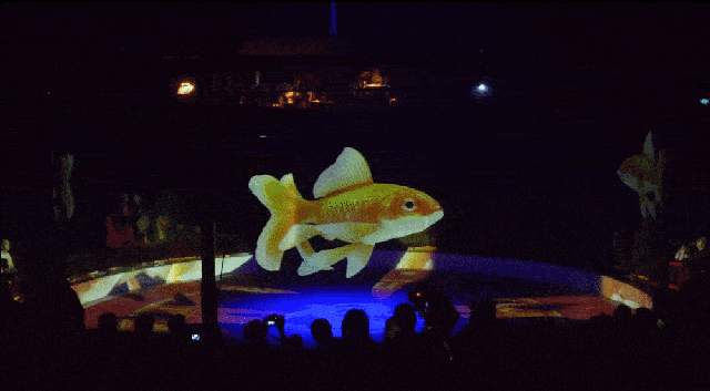 Circus Roncalli馬戲團(tuán)投資了50萬歐元(約合人民幣388萬元),將3D動物全息圖展示在長32米、寬5米的舞臺上,放映大象、馬和金魚的3D全息動畫作為表演的一部分,配以巧妙的特效,為全場觀眾獻(xiàn)上一場奇特的馬戲表演。