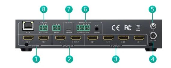 RS232-CTL控制命令環(huán)出口,可以旁通信號(hào)到級(jí)聯(lián)設(shè)備,控制下一級(jí)設(shè)備。