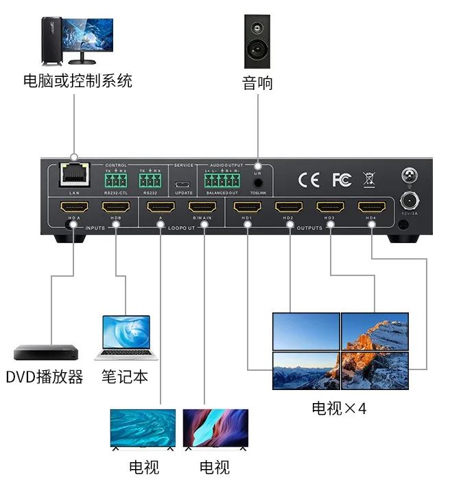 2進(jìn)4/9出 HDMI2.0 視頻拼接器符合HDMI 2.0和HDCP2.2規(guī)范(向下兼容);