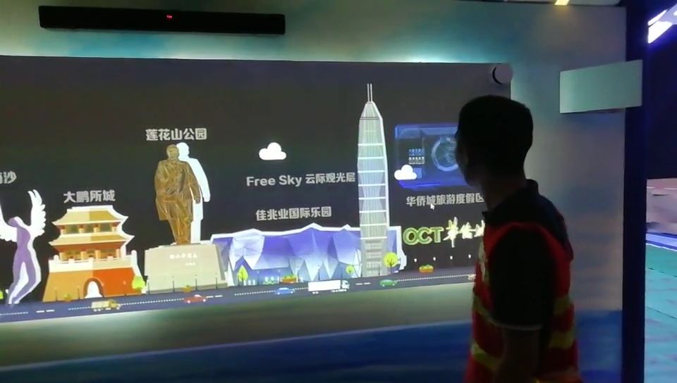用投影和雷達(dá)把大型的墻面變成超級(jí)觸摸屏,用戶不僅可以觀看到高畫(huà)質(zhì)投影的圖像,同時(shí)也可用手觸摸墻面,根觸摸屏一樣,可以作為游戲、路標(biāo)指示、詳情介紹等場(chǎng)景使用。