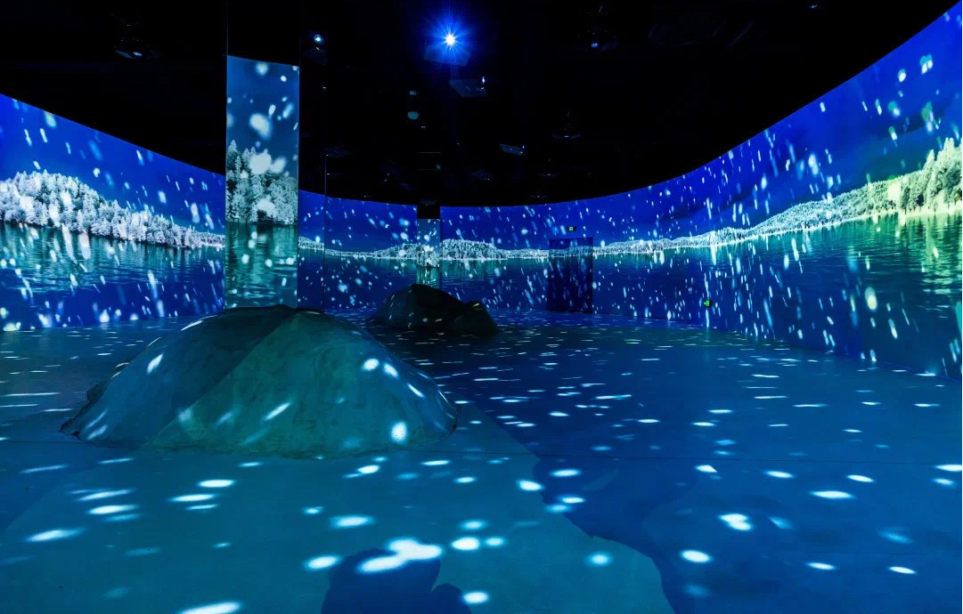 該景點(diǎn)位于千島湖景區(qū)中心湖區(qū)旅游碼頭的秀水街,占地面積 2000 余平方米,包括五個(gè)主題區(qū),采用先進(jìn)的視聽(tīng)技術(shù)如投影映射和人工智能將該地區(qū)迷人的自然美景呈現(xiàn)在游客面前。引人注目的是一個(gè)360度環(huán)幕加地幕的沉浸式空間,和三個(gè)大弧幕等,全部由科視Christie DWU860-iS 激光投影機(jī)點(diǎn)亮。科視 Christie 值得信賴的合作伙伴中清映業(yè)集團(tuán)負(fù)責(zé)投影系統(tǒng)設(shè)計(jì)、以及所有投影機(jī)的安裝和調(diào)試。