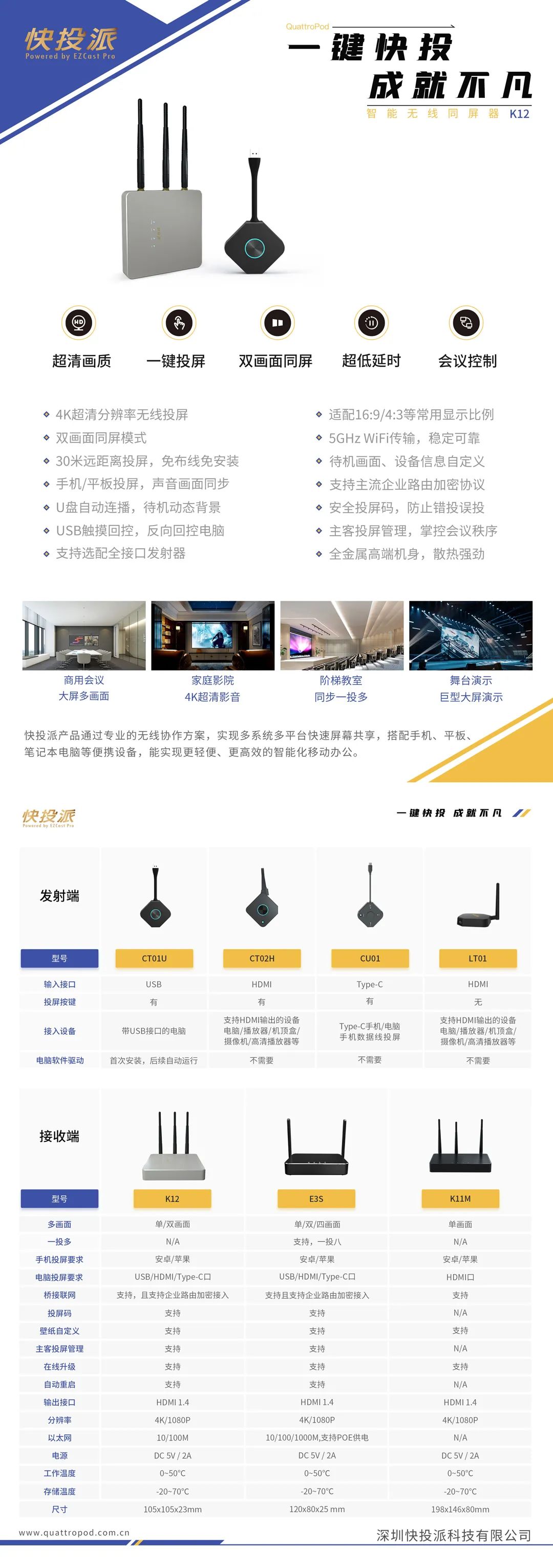 本項(xiàng)目是快投派為中鐵十五局集團(tuán)有限公司,提供的無線投屏解決方案。支持辦公會(huì)議,項(xiàng)目投屏,展示4K高清視頻傳輸需求,無線一投多方案,支持兩畫面分屏、投屏碼、會(huì)議控制管理、觸控回傳等豐富功能,提供快捷、專業(yè)的無線演示體驗(yàn)。