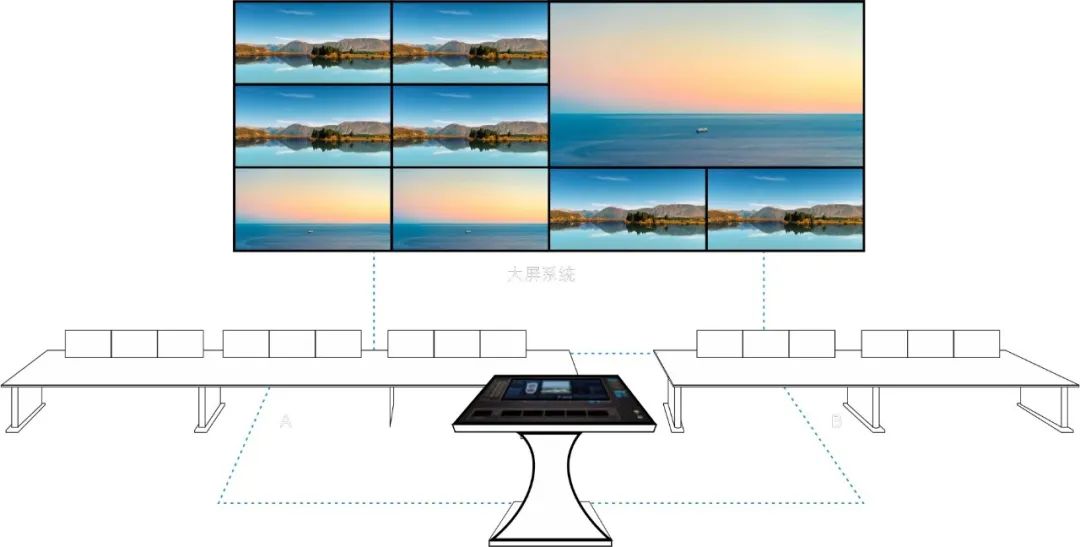 在布局完成后,拼接屏迅速切換為新的布局,也可將預(yù)布局保存為場景,待需要時(shí)調(diào)用,提高了應(yīng)急情況下慧醫(yī)保信息中心各部門協(xié)同、集群指揮、聯(lián)合遠(yuǎn)程視頻會(huì)商、調(diào)度信息管理的能力。