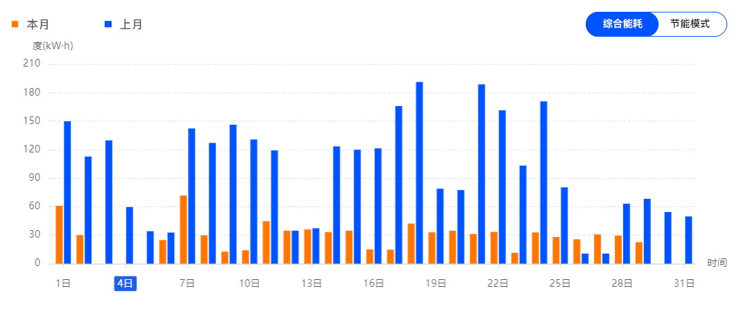 橙色為4月能耗(某公司使用NAVIoT智慧管理平臺(tái)后)