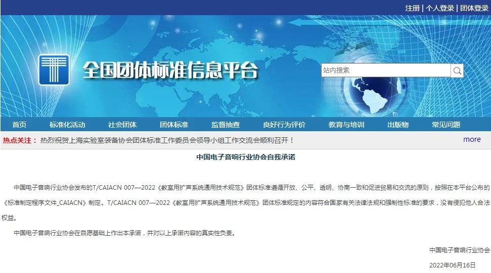 在全國(guó)團(tuán)體標(biāo)準(zhǔn)信息平臺(tái)正式發(fā)布