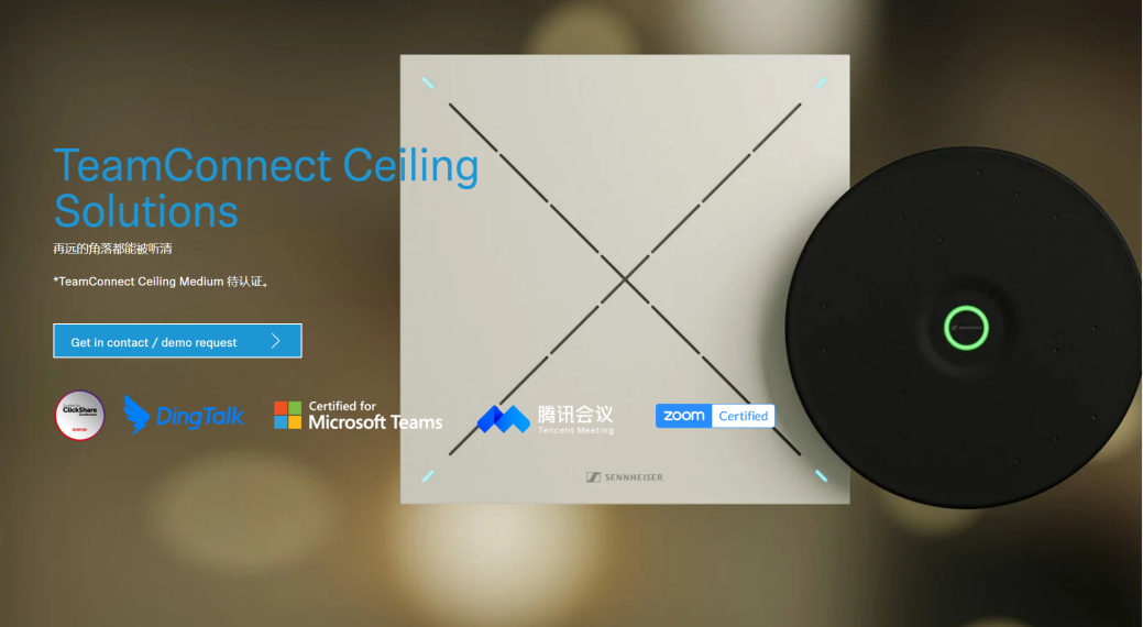 TCC 2和TCC M還擁有出色的兼容性,可與森海塞爾及多款第三方兼容產(chǎn)品搭配使用,為不同類型和尺寸的混合協(xié)作空間提供聲音清晰卓越、硬件易集成、軟件高適配的解決方案。TCC 2 現(xiàn)已獲得騰訊會議、釘釘會議、Microsoft Teams 及Zoom 等主流視頻會議平臺認(rèn)證。