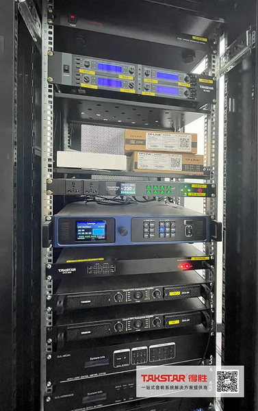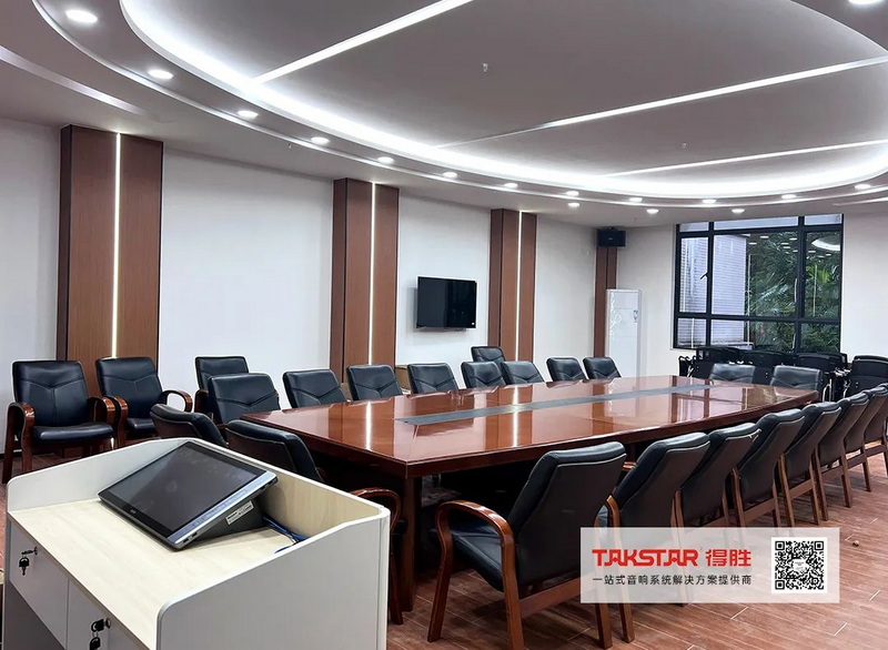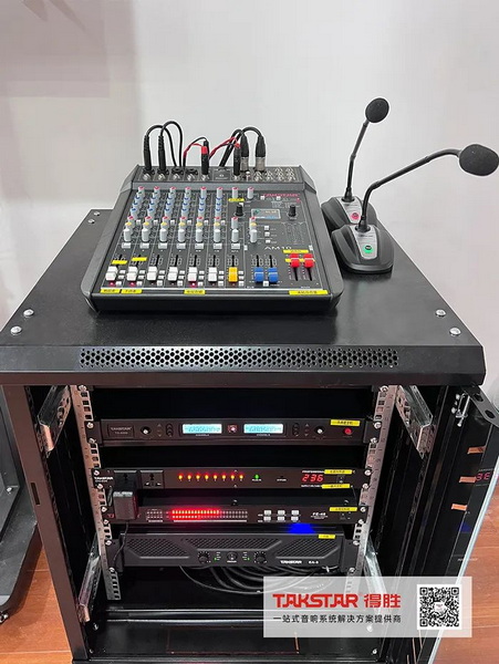 根據(jù)會議室結(jié)構(gòu)及聲學(xué)原理,得勝(廣州)專業(yè)技術(shù)團(tuán)隊配置了TK-110音箱搭配EA-3專業(yè)功放為擴(kuò)聲設(shè)備,拾音設(shè)備選用TS-8999TT無線麥克風(fēng),配合AM-10模擬調(diào)音臺、EPO-802N電源時序器等音頻設(shè)備,為會議活動提供清晰自然的語言擴(kuò)聲及穩(wěn)定的音效控制,使系統(tǒng)整體傳聲效果更契合室內(nèi)空間布局。
