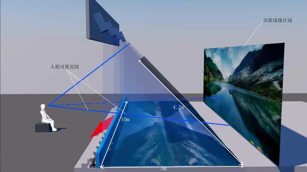 由于人眼觀測到的成像位置在反射膜內側,且反射膜具有相當高的透明度,配合上恰當?shù)陌祱鲭[藏,最終會給觀眾呈現(xiàn)出漂浮的立體影像。