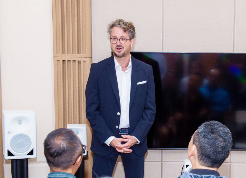 森海塞爾大中華區(qū)專業(yè)音頻產(chǎn)品應用技術(shù)經(jīng)理趙亞軍介紹了諾音曼全鏈路參考級產(chǎn)品及其前沿技術(shù),并分享了全球眾多前沿沉浸聲錄音棚的精彩案例,其沉浸聲系統(tǒng)均使用諾音曼KH系列監(jiān)聽音箱搭建,應用場景覆蓋各專業(yè)音頻領(lǐng)域。這些錄音棚均已滿足杜比全景聲內(nèi)容制作環(huán)境的要求。