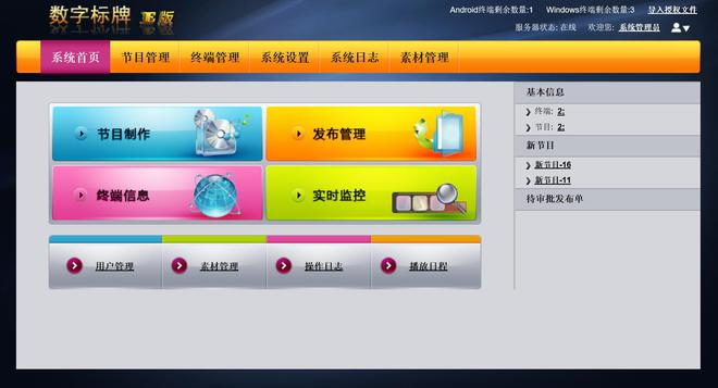 全新觸拓數(shù)字標(biāo)牌E版軟件升級(jí)版,在系統(tǒng)穩(wěn)定性、安全性以及易用性方面都進(jìn)行了全面優(yōu)化。節(jié)目制作功能強(qiáng)大,支持多種格式素材導(dǎo)入和精確定位,讓您的節(jié)目更加豐富多彩。素材庫(kù)和模板庫(kù)的豐富多樣,讓您的創(chuàng)意無(wú)限發(fā)揮。同時(shí),審核管理、遠(yuǎn)程監(jiān)控、終端信息和在線地圖等功能,讓您的管理更加便捷高效。