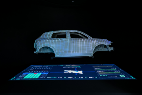 針對數(shù)字技術(shù)的研發(fā)創(chuàng)新,中心也詳細演示了基于工業(yè)互聯(lián)網(wǎng)平臺研發(fā)的一批業(yè)內(nèi)領(lǐng)先的、高價值的工業(yè)軟件。其中,在3D Mapping投影展示區(qū)域,以投影實體白車身和人機交互操作屏的形式,重點呈現(xiàn)了聚焦汽車點焊、噴涂、尺寸質(zhì)量等環(huán)節(jié)工藝質(zhì)量提升的工業(yè)軟件。