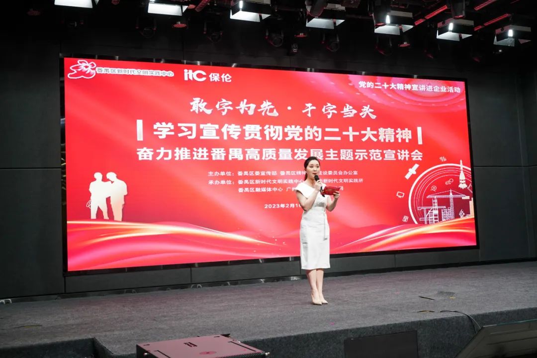 2月16日下午,由番禺區(qū)委宣傳部、區(qū)文明辦主辦,番禺區(qū)新時代文明實踐中心、東環(huán)街新時代文明實踐所、番禺區(qū)融媒體中心、廣州市保倫電子有限公司承辦的“敢字為先 干字當頭——學習宣傳貫徹黨的二十大精神 奮力推進番禺高質(zhì)量發(fā)展”主題示范宣講會在保倫電子itc召開。廣州市委講師團副團長區(qū)肇君,番禺區(qū)委宣傳部副部長、區(qū)文明辦主任張青,廣州市保倫電子有限公司副總裁阮勝林,相關職能部門、鎮(zhèn)街分管領導、宣傳辦主任,區(qū)基層理論宣講團代表以及保倫電子員工代表共同參加活動。