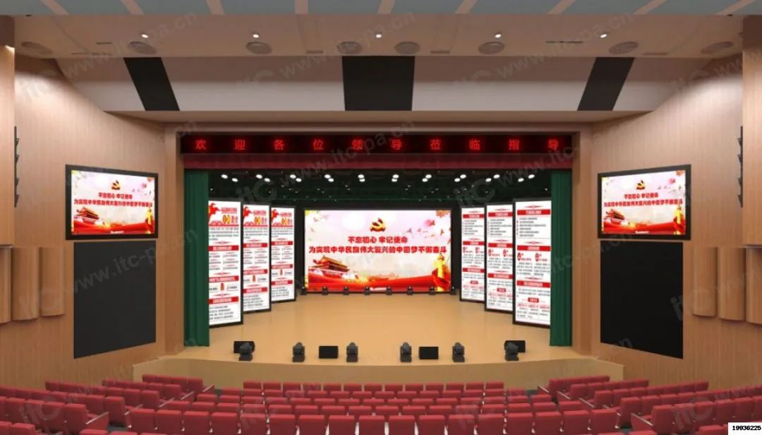itc報(bào)告廳建設(shè)遵循廳堂用途的多樣化,建設(shè)融合智能管控、線陣擴(kuò)聲、LED顯示屏、舞臺(tái)燈光、專業(yè)擴(kuò)聲等系統(tǒng),滿足報(bào)告廳在多場(chǎng)景模式下的使用需求,同時(shí)整合聲光電視訊系統(tǒng),實(shí)現(xiàn)對(duì)廳內(nèi)設(shè)備信號(hào)的任意調(diào)度和管控,確保多種場(chǎng)景模式下設(shè)備應(yīng)用狀態(tài)一鍵可視化切換,以及個(gè)性化需求模式預(yù)設(shè)一鍵調(diào)用。