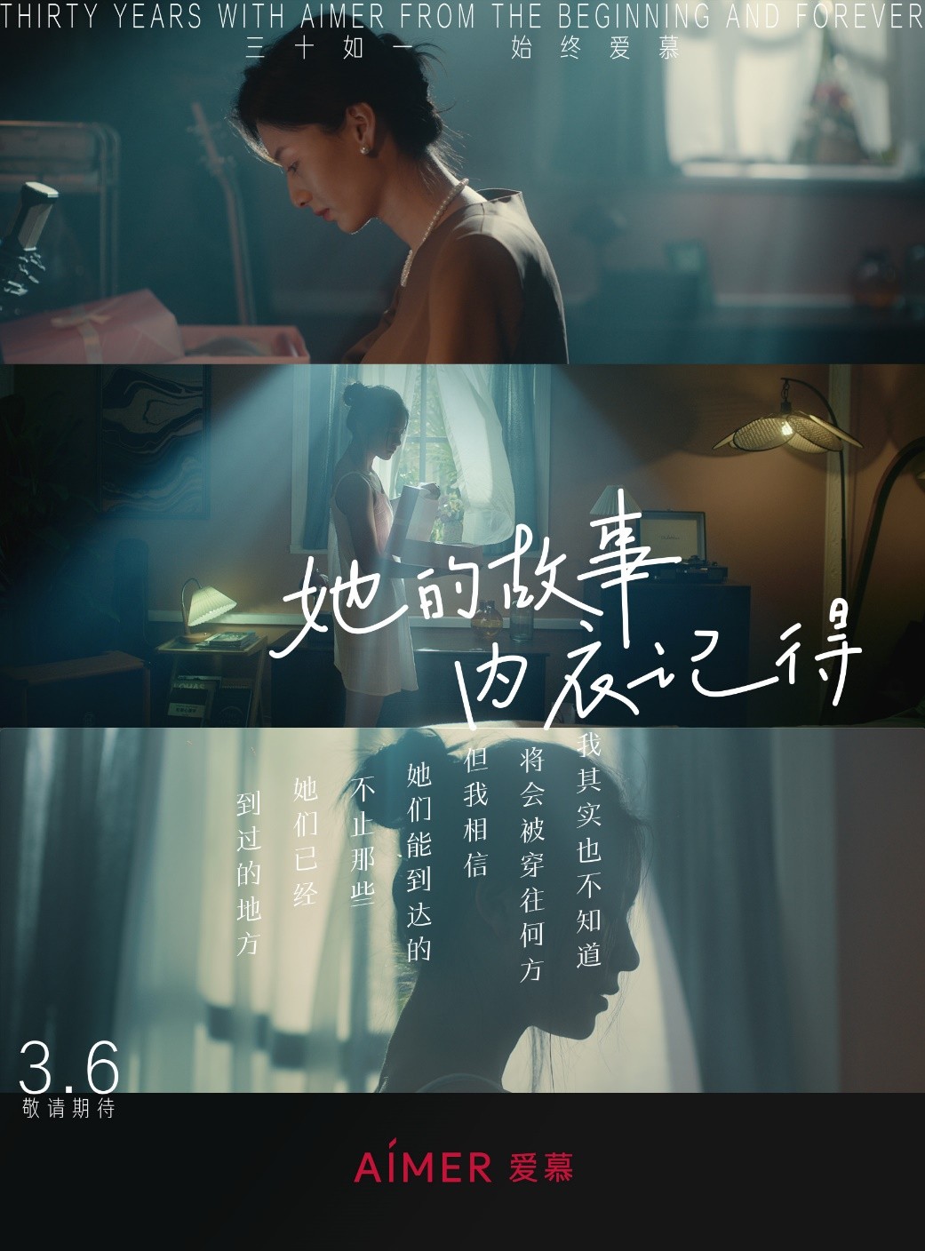 過往三十年里,愛慕與消費(fèi)者共同成長,并逐步建立了愛、 美、生命力的品牌價值觀。正如微電影結(jié)尾所呈現(xiàn)的,“愛慕三十年來見證中國女性力量,始終與當(dāng)代女性一路同行”。面向未來,愛慕始終會堅守初心,通過不斷創(chuàng)造滿足消費(fèi)者需求的“品質(zhì)、時尚、健康、科技、 藝術(shù)”的產(chǎn)品和體驗,實現(xiàn)對美的追求和創(chuàng)造,傳遞對全球消費(fèi)者的關(guān)愛,并持續(xù)推動行業(yè)的創(chuàng)新發(fā)展。三十如一,始終愛慕。