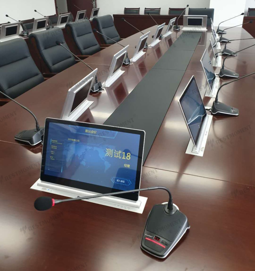 為了滿足福建省某市紀(jì)委的需求,雷蒙電子為會議室裝備了第四代全數(shù)字會議系統(tǒng)RX-A6系列和升降式電子桌牌會議系統(tǒng)。第四代全數(shù)字會議系統(tǒng)具備發(fā)言討論、自動視頻跟蹤、超強抗手機干擾和數(shù)模雙備份保障等等功能;單元配置觸摸控制屏,可進行5段EQ均衡調(diào)節(jié),每支話筒可設(shè)置專用EQ,具備手動/自動增益調(diào)節(jié),低音切除和任意區(qū)域輸出,高保真音質(zhì)。升降式電子桌牌會議系統(tǒng)終端采用雙面高分辨率LCD液晶屏,IPS廣視角屏幕,450流明,UI界面極簡至尚,人性化直觀操作;可根據(jù)用戶的需求定制LOGO,多色背景定制,多款背景圖片隨意更改;電容式觸摸屏,支持多點觸控,功能豐富,讓無紙化會議及各項操作更便捷高效。