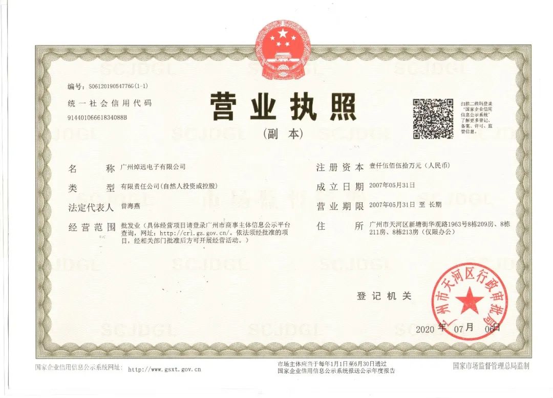廣州焯遠(yuǎn)電子有限公司成立于2007年,深圳市焯遠(yuǎn)電子有限公司成立于2022年,與廣州焯遠(yuǎn)電子有限公司攜手同行。