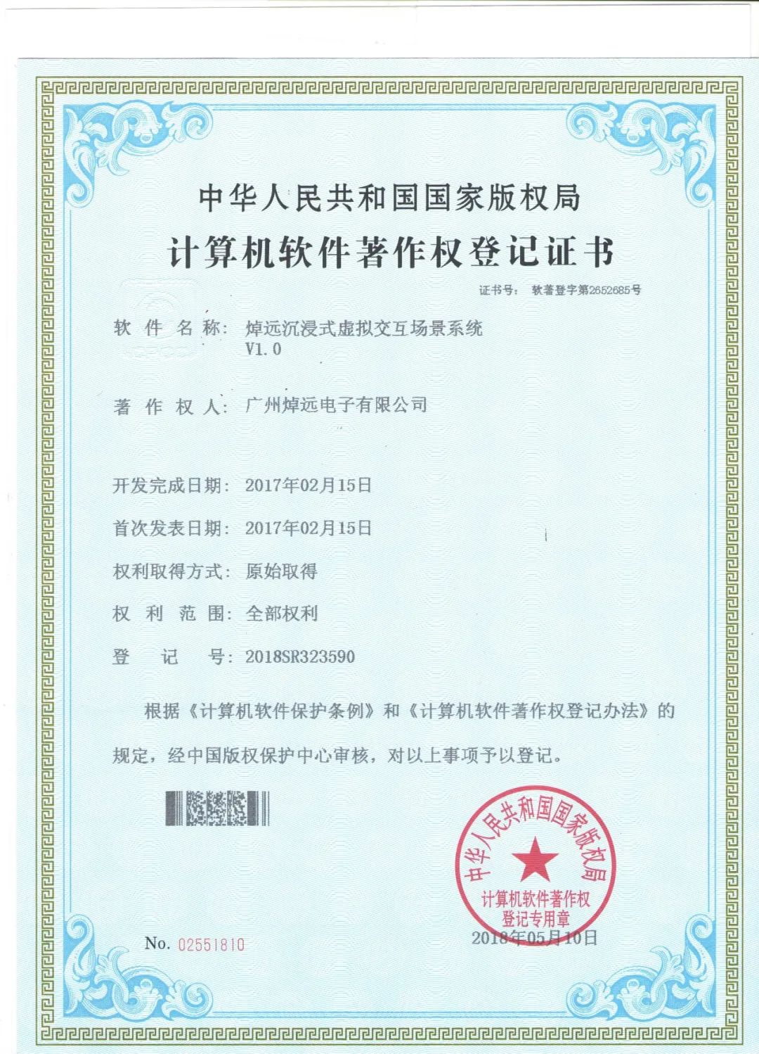 沉浸式虛擬互動場景系統(tǒng)證書