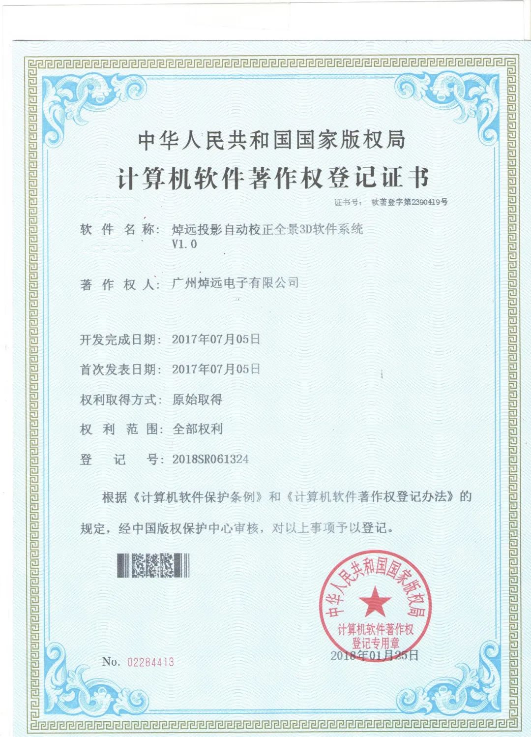 自動校正全景3D軟件系統(tǒng)證書
